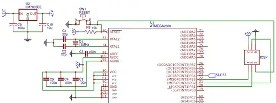 I'm designing a custom board with an atmega2560. It will be programmed using ArduinoISP. I want to be sure that i have made no mistakes on my schematic design before I order it. I folloud the schematic for the arduino mega 2560 from the arduino website. For the basic function of uploading a sketch is my design correct?
