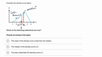 A density curve models the distribution of a quantitative variable with a smooth curve. The area under a density curve over some interval represents what proportion of observations fall in that interval. Let's learn how to create density curves and understand their properties.