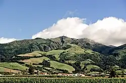 Situated in the central part of the island, Água de Pau corresponds to a central volcanic complex and caldera that includes a large lake, punctuated by lava domes and a pumice cone.[5] On the flanks of the massif is the Ribeira Grande Graben, a tectonic structure oriented northwest-southeast, in addition to other regional fractures and radial faults that formed other scoria and pumice cones, or lava domes.[5]