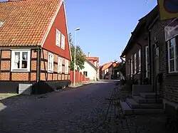 Åhus medieval town hall, which is mentioned in writing for the first time in 1431, is partly preserved in the building by the square that now houses the Åhus museum.[6] Åhus lost much of its significance with the Reformation in the 16th century, a century when Swedish looting also hit hard and, among other things, turned the castle into the ruin in the port area where it still is today. The period of decline was completed with Åhus losing its city rights in 1617, when the fortress town of Kristianstad was founded by Christian IV. In 1658, Åhus came to Sweden through the Treaty of Roskilde.
