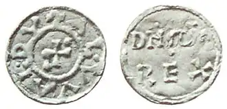 - ^ Frank Stenton regarded Æthelwold's acceptance as king of the Northumbrian Danes as unlikely, and the identification of the Northumbrian coins with Æthelwold as unsafe,[42] but the view that he was accepted as Northumbrian king has been supported by Keynes and Lapidge,[3] and the coin identification by the numismatist C. E. Blunt.[41]