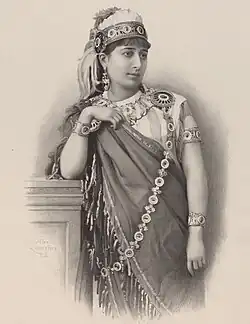 - ^ During her American tours, a variety of fanciful accounts of her parentage and youth in North Africa were published in the local press. These included assertions that she was a "Moorish Italian", that her mother was Arab or half-Arab, that as a young girl Ambre played serenades on the zither and sang to children in the desert, that she was the niece of the "Emperor of Morocco", and that she had an affair with a French diplomat in Algeria but left him for the Khedive of Egypt and when she tired of the Khedive went to France in search of the diplomat, but unable to find him, enrolled in the Marseilles Conservatory instead.[2][3][4]