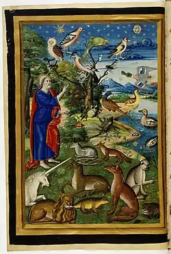 Étienne Colaud (also Étienne Collault) was a French illuminator and book dealer, active in Paris between 1512 and 1540. A number of surviving archives indicate that he was based on the Île de la Cité, close to the cathedral of Notre-Dame, and that other family members also worked in the book trade. His clientele came from leading families of the time, including great land owners, top prelates, and even the king himself. Using a Book of hours that carries his name, scholars have attributed approximately twenty manuscripts to him by analysing the techniques and style applied. There are also a number of religious books, translations into French from Latin or Italian, chivalric narratives and illuminated texts. Étienne Colaud's style is strongly influenced by his near contemporary, the Parisian illuminator Jean Pichore, but his work indicates that he was also networked with virtually every other Paris book-artist of the period.[1][2]