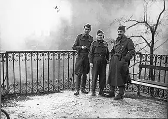 After the attack of the Axis Powers on the Kingdom of Yugoslavia and the bombing of Belgrade on April 6, 1941, Kun went to Bačka Palanka to report to the military command. While in Ruma, he received news that his unit had been transferred to Bosnia, and he subsequently headed to Han Pijesak via Šabac and Zvornik, where he received news of the capitulation of the Yugoslav Army. He headed back to Belgrade, and after two weeks of searching for the unit, he returned home at the end of April. His father-in-law's house, where he lived with his family, was damaged in the German bombing and a large number of his paintings were destroyed.[20] Spasenija Cana Babović announced the party's decision to go underground. In order to better mislead the police, Kun grew a mustache, changed his hairstyle and walk, started wearing glasses and started using the pseudonym Petar Antonijević.[21] Prior to the war, Kun learned how to create forged documents for the party, including passports, identification cards and stamps.[22] With the help of his friend from Spain Milan Blagojević, who illegally lived in his house throughout 1939, he built his graphic press in the bunker's wall in May of 1941.[23]