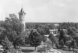 In the 1898 the German Army created a large training ground (de) here. In World War I it was the site of a large prisoner-of-war camp for Russian soldiers. After 1919, Polish Silesian insurgents were held in the camp.[3] In August 1939 the ground was the scene of a military air disaster (de) when 13 Stuka dive bombers of the Luftwaffe flew into the ground in low-lying cloud. In 1941 the Bergmann Battalion and Nachtigall Battalion trained in Neuhammer. In World War II another POW camp Stalag VIII-E was built here, to house Polish and French prisoners. In 1942 they were replaced with Soviet prisoners, and the camp was placed under the administration of Stalag VIII-C near Żagań. At least 50,000 Soviet prisoners died here from disease, starvation and inhumane treatment, the last 200 of them killed as traitors after the war by the NKVD. A Red Army base until 1992, today it is the site of a Polish Army base, and since January 2017 also the NATO forces.