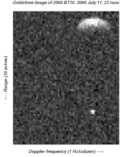 ![]() Radar image of 2008 BT18 and its satellite from Arecibo Observatory in July 2008 | |