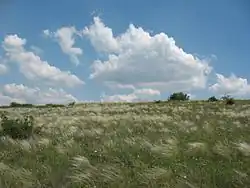 The sky over the feather grass-covered steppe in Ukraine. *Dyḗus ph₂tḗr has been translated as "father daylight-sky-god" | |