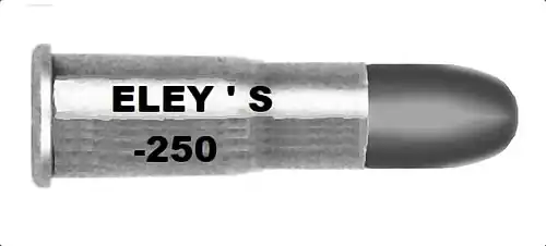 This cartridge was introduced by Holland & Holland some time before 1880 by blowing out the neck of the .297/230 Morris Long to .250 in (6.4 mm).[3] This cartridge is a contemporary of the .255 Jeffery Rook and upon their release the pair competed heavily with the very popular .300 Rook.[4]