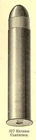 The .577 Black Powder Express is a series of black powder cartridges of varying lengths including 21⁄2-inch, 23⁄4-inch, 3-inch and 31⁄4-inch.[1]