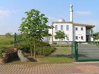 Named after second Caliph Mirza Basheer-ud-Din Mahmood Ahmad, foundation Aug 2005, completed 23 Dec 2006, plot 1006 m2, prayer hall 188 m2, no minaret, 400 members[11] 49°41′8″N 8°35′36.2″E / 49.68556°N 8.593389°E / 49.68556; 8.593389 (Bashier Mosque)[M 14]