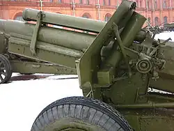 The decision to initiate development of larger caliber divisional guns was made in the second half of 1937.[1] Late that year the 95 mm was proposed. On 10 March 1938 the Main Directorate of Artillery (GAU) initiated work on a 95 mm divisional gun at the Kirov Plant and the No. 92 Plant. The former quickly abandoned the development, but the UZTM Uralmash production facility swiftly joined the program. Both guns were supposed to have a companion piece in the form of the 122 mm howitzer.