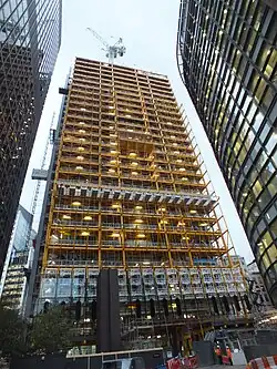 The building adjoins the Lloyd's Building, also designed by Richard Rogers.[5] The previous, 1960s building on the site was owned by British Land and had been designed by Gollins Melvin Ward. By December 2009, the site was cleared but construction stalled because of the 2008 financial crisis. The project was revived in 2010 by Oxford Properties in partnership with British Land.[6]