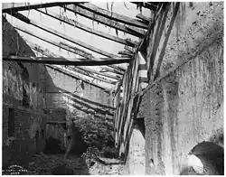 Damage was reported at Mission Santa Inés, Mission Santa Barbara, Santa Barbara Presidio, Mission San Buenaventura, and Mission San Fernando.[17] One person was killed by a falling boulder at Agua Caliente. At the various missions, many houses, churches, chapels, and other structures totally collapsed.[15][18] Three adobe buildings were destroyed by the advancing tsunami. At Mission San Buenaventura and Mission Santa Barbara, the destruction was great, and a native person died when a building collapsed on him during an aftershock.[15]
