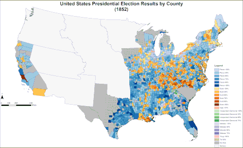- 1852 popular vote by counties