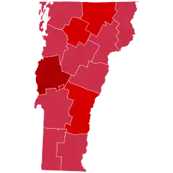 | Chittenden | 3,418 | 62.58% | 1,952 | 35.74% | 91 | 1.67% | 0 | 0.00% | 1 | 0.02% | 1,466 | 26.84% | 5,462 |