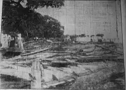 Although the storm killed more than 370 people in the United States, the National Weather Bureau was credited for "invaluable warnings" prior to the hurricane's arrival, saving many lives.[1] Following the hurricane's landfall on September 21, rescue and relief efforts began taking place on September 22 near Houma, Louisiana.[21] By September 25, thousands of dollars worth of supplies had been sent to survivors of the storm.[25] However, more than four days after the passage of the storm, many other areas devastated by the hurricane had yet to receive aid from either the government or United States Army. Congressman Robert F. Broussard sent a telegraph to the war department requesting aid; however, he had not received a response by September 27. Initially, news reports focused on the large loss of life from the storm but, once the lack of aid was noticed, their attention shifted to the hundreds of survivors who were left homeless and in dire need of basic necessities.[26] Within days of the storm's passage, there were fears that the storm ruined the cotton crop in southern Louisiana and would cause a spike in prices. However, in a report released on October 4, 1909, it was stated that the losses were much less than previously thought and as a result, there would be no change in the cotton price.[27] According to a report in 2009, the rice and cotton crops sustained 35% and 20% losses respectively in the wake of the hurricane.[13]
