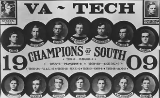 The 1909 VPI football team represented the Virginia Agricultural and Mechanical College and Polytechnic Institute in the 1909 college football season. Led by first-year head coach Branch Bocock, the team went 6–1 and claims a Southern championship.[1][2] Tech outscored its opponents 148 to 27. The starting lineup averaged 172 pounds.[3] This is the first season the team was referred to in print as the "Gobblers", and it became the official nickname in 1912.[2][4]