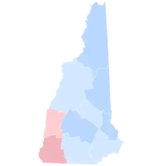 Wilson won New Hampshire by a narrow margin of 2.05 points, becoming the first Democratic presidential candidate since New Hampshire native Franklin Pierce in 1852 to win the state or populous Hillsborough and Strafford Counties. He was the first Democrat since Grover Cleveland in 1892 to carry any of New Hampshire's counties, the first since Cleveland in 1888 to carry Merrimack and Rockingham Counties, the first to win Belknap County since Cleveland in 1884, and the first to win Grafton County since Winfield S. Hancock in 1880.[1]