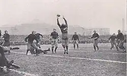 The 1920 Pittsburgh Panthers football team was an American football team that represented the University of Pittsburgh as an independent during the 1920 college football season. In its sixth season under head coach Pop Warner, the team compiled a 6–0–2 record and outscored all opponents by a total of 146 to 44.[1][2] The team played its home games at Forbes Field in Pittsburgh. "Perhaps due to the resurrection of sports after the war period, Pitt enjoyed an athletic year that was quite indicative of its pre-war strength, which so practically dominated college sport activities in this section for many years. The season of 1920-21 boasted of representative Pitt teams in every branch of sport - football, basketball, baseball, track, swimming and tennis. Aviation, which made its initial bow at the University last year, progressed in fine manner – the team having been entered in the big intercollegiate meet.[3]