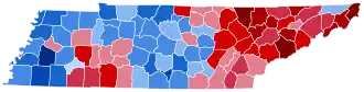 For over a century after the Civil War, Tennessee was divided according to political loyalties established in that war. Unionist regions covering almost all of East Tennessee, Kentucky Pennyroyal-allied Macon County, and the five West Tennessee Highland Rim counties of Carroll, Henderson, McNairy, Hardin and Wayne[1] voted Republican – generally by landslide margins – as they saw the Democratic Party as the “war party” who had forced them into a war they did not wish to fight.[2] On the other hand, the rest of Middle and West Tennessee, which had supported and driven the state's secession, was equally fiercely Democratic because it associated the Republicans with Reconstruction.[3]