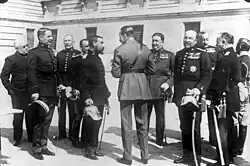 Another of the decisions taken by the government was to order the captain general of Madrid, General Diego Muñoz-Cobo, to arrest the four generals of the Quadrilateral, but he refused unless the order was signed by the king.[177][178] As Ben-Ami has noted, "in fact, for all practical purposes, Muñoz-Cobo acted as if he were a member of the conspiracy. He was reluctant, he said, to fight against the pronunciados for fear of dividing the army and provoking 'another Alcolea'".[179][180] Faced with the attitude of the Captain General of Madrid, the government sought the support of the General Director of the Civil Guard and the General Commander of the Security Guard, but both replied that, although they would not revolt, "neither would they take up arms against their colleagues in the Army". He also tried to get General Pío Suárez Inclán (brother of the Minister of Finance) to go to the headquarters of the Captaincy General and replace Muñoz-Cobo, but he replied that he lacked the strength to obey him and that "any attempt at resistance would be in vain, because all the corps were in agreement with the movement, and if they left the barracks it would not be precisely to support the Government".[181] When Captain General Muñoz-Cobo received a telegram from the head of the King's Military Household, General Milans del Bosch, in which the latter asked him about his attitude towards the "movement", he replied that "the troops were at his [the King's] disposal", but that "the Government would have to leave".[182] Thus, "the government did not have military control of Madrid" so "it was then forced to wait for Alfonso XIII's decision".[183]