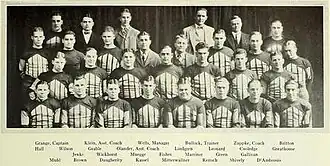 This was the final season for hall-of-fame All-American halfback Harold "Red" Grange. Grange was also the team captain.[2]