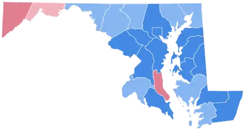 Until 2020, this was the last time the Democratic candidate won over 65% of the vote in Howard County.[5] As of 2020, this is also the last time the Republican candidate failed to win a single county on the Eastern Shore.[6]