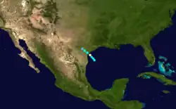 An area of disturbed weather was first detected near the Yucatán Peninsula on June 18. It tracked west-northwestward, and developed into a tropical storm the following day. The storm continued to the west-northwest until June 21, when the storm turned to the west-southwest. Having remained a minimal tropical storm for all of its lifetime, the 40-mph (65-km/h) storm struck northeast Mexico on June 21, and dissipated the next day. The storm caused higher than normal tides along the Texas coastline, and no damage or deaths were reported.[1]
