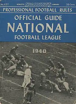 - ^ Official Rules of the National Football League, 1940, in Carl L. Storck (ed.), Official Guide of the National Football League, 1940. New York: American Sports Publishing Co., 1940; rules p. 20.