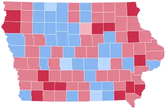 | Poweshiek | 4,773 | 49.66% | 4,794 | 49.88% | 32 | 0.33% | 8 | 0.08% | 4 | 0.04% | -21 | -0.22% | 9,611 |