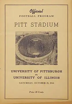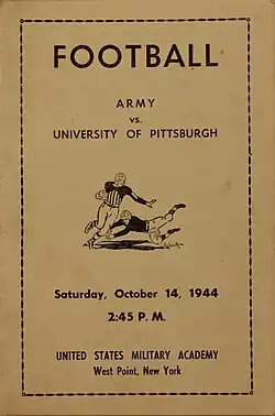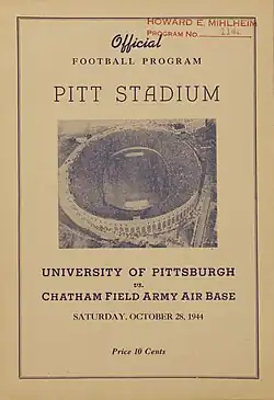- ^ "1944 Pitt Varsity Squad". Pitt Vs.West Virginia Souvenir Program. University of Pittsburgh Athletic Department: 1. September 23, 1944.