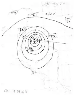 Early on October 2, the tenth tropical storm of the season was noted about 150 mi (240 km) northeast of the Nicaragua–Honduras border. It intensified into a Category 1 hurricane by 00:00 UTC the next day on a general west-northwest track and peaked with winds of 90 mph (140 km/h) 24 hours later,[2] although the crew aboard a reconnaissance aircraft originally estimated 100 mph (160 km/h) sustained winds.[3] The cyclone tracked west-southwest and made landfall north of Punta Gorda, Belize at peak strength, quickly weakening once inland. Crossing Guatemala and Chiapas, the depression paralleled the coastline of Mexico for a time before moving ashore west of Lázaro Cárdenas, Michoacán. The wilting system dissipated over southern Durango by 12:00 UTC on October 7.[2]