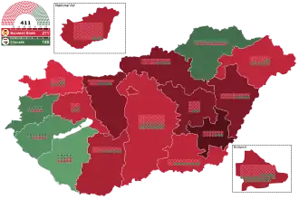| Hungarian Independence Party | 670,751 | 13.43 | 47 | 2 | 49 | New | ||