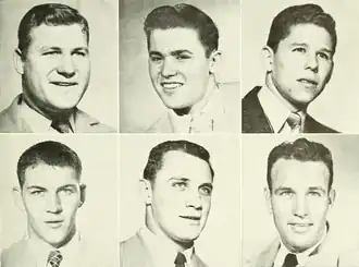 ![]() Top row (left to right): Dennis Doyle, Bobby Jones, Rex Partridge. Bottom row (left to right): Max Druen, Bill Svoboda, Dick Sheffield | |