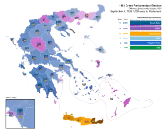 Parliamentary elections were held in Greece on 9 September 1951.[1] They resulted in an ambivalent outcome, consisting a narrow and pyrrhic, as proven later, victory for the ruling center-liberal parties of Sophoklis Venizelos and Nikolaos Plastiras.