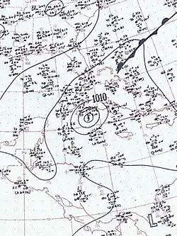 On February 2, a non-frontal low formed in the western Caribbean Sea two months after the end of the hurricane season. It moved quickly north-northwestward and acquired gale-force winds as it brushed the northern coast of Cuba. Early on February 3, the storm struck Cape Sable, Florida and quickly crossed the state.[4] The Miami National Weather Service office recorded a wind gust of 68 mph (109 km/h) during its passage.[5] The winds damaged windows and power lines,[6] catching residents and tourists off-guard.[7] The cyclone also dropped 2–4 inches (51–102 millimetres) of precipitation along its path, causing crop damage in Miami-Dade County.[5]