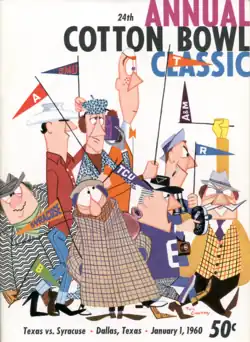 The 1960 Cotton Bowl Classic was the 24th edition of the college football bowl game, played at the Cotton Bowl in Dallas, on Friday, January 1. Part of the 1959–60 bowl game season, it matched the independent and top-ranked Syracuse Orangemen and No. 4 Texas Longhorns of the Southwest Conference (SWC). The favored Orangemen won, 23–14.[3][5]