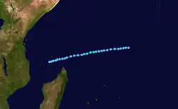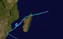 On January 7, Cyclone Denise passed north of Mauritius, producing wind gusts of 170 km/h (110 mph). Later, the storm crossed over Réunion, dropping record rainfall. Over a 24-hour period, Denise dropped 1,825 mm (71.9 in) of rainfall at Foc Foc, Réunion, of which 1,144 mm (45.0 in) fell over 12 hours; both precipitation totals are the highest recorded worldwide for their respective durations. Over 48 hours, precipitation totaled 2,230 mm (88 in) at Bras Sec. The heavy rains caused flooding that killed three people, and caused severe road and crop damage.[1][2][3]