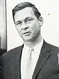 MacKay campaigned against Brooke for refusing to back Barry Goldwater's 1964 presidential campaign. During the first stage of the campaign, conservative spokespersons engaged in an anti-Brooke publicity and letter-writing campaign.[3] Conservatives were particularly critical of Brooke's book, The Challenge of Change. A critical review of the book was mailed to all Republican convention delegates along with a questionnaire linking Brooke's views to the Communist Party and Americans for Democratic Action. A third mailing went out accusing Brooke of participating in "the phony Great Society schemes of L.B.J. and his curious crew."[3]