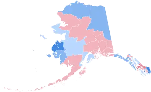 Wallace received over 12% of the vote in Alaska, unusually well for a state so far removed from his strongholds in the Deep South.[3] This would begin Alaska's reputation as a state where third party candidates of differing political persuasions do relatively well.