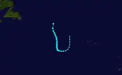 A tropical wave developed into a tropical depression near the Windward Islands on August 29.[2][4] Initially, the depression slowly strengthened while moving west-northwestward and was upgraded to Tropical Storm Francelia until more than 24 hours later. While located north of Honduras, it curved west-southwestward and was upgraded to a hurricane on September 1. Late on September 3, Francelia made landfall near Punta Gorda, Belize with winds of 100 mph (160 km/h). The storm quickly weakened inland, and less than 24 hours later, it dissipated over northern Guatemala.[2] However, the remnants of Francelia later contributed to the development of Hurricane Glenda in the eastern Pacific Ocean.[4]