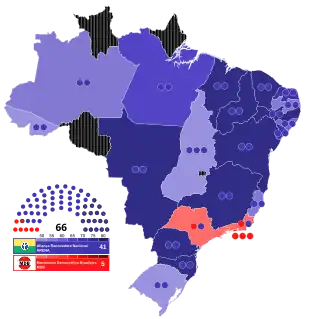 | Brazilian Democratic Movement | 13,440,875 | 39.57 | 6 | |