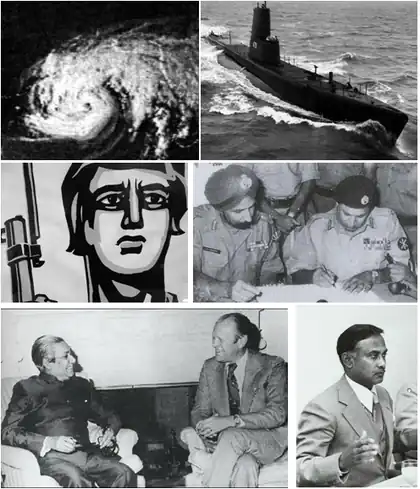 The 1970s (pronounced "nineteen-seventies", commonly abbreviated as the "Seventies") was a decade of the Gregorian calendar that began on 1 January 1970, and ended on 31 December 1979. It was a very significant decade in the history of Bangladesh, because this is the decade in which Bangladesh emerged as a sovereign state. The decade began with a devastating cyclone that ravaged the southern part of the country. The next year the country went into Liberation war and achieved independence from Pakistan. The government of Sheikh Mujibur Rahman administered the newly formed country between 1972–1975, but their rule soon came to an end through a series of coups and counter coups in the later part of the decade. Economically the country struggled because of the war (1971) and famine (1974) throughout the decade and was highly dependent on foreign aids. Culturally, in this decade Bangladesh started to establish its own identity as an independent nation.