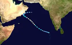 A tropical cyclone moved through the Arabian Sea near the end of October.