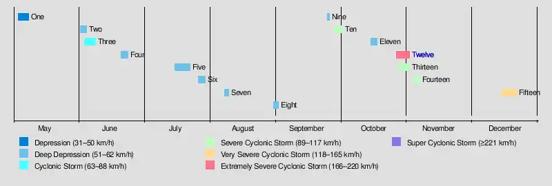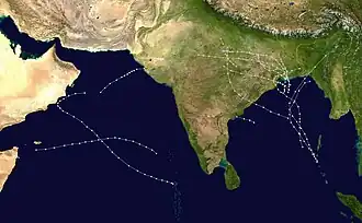 - ^ "Frequently Asked Questions: What is the annual frequency of Cyclones over the Indian Seas? What is its intra-annual variation?". India Meteorological Department. 2012. Archived from the original on May 21, 2015. Retrieved June 8, 2012.