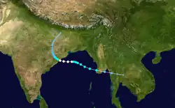 This cyclone was formed on 20 September and intensified to a Very Severe Cyclonic Storm despite being present over the upwelled waters due to Cyclone 09B. It made landfall at Gopalpur in Odisha on 22 September and dissipated by the next day. Wind gusts of up to 140 km/h (85 mph) were recorded at the time of landfall. Despite severe damage to crops and houses, no deaths due to the storm were reported.