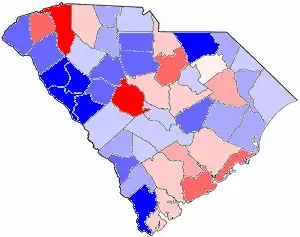 1974 South Carolina gubernatorial election map, by percentile by county.