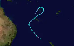Name Dates active Peak intensity Areas affected Damage