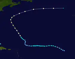 - ^ a b c d e f g h i j k l m n o p q r s t u v w x y z aa ab ac ad ae af ag ah ai aj ak al am an ao "Atlantic hurricane best track (HURDAT version 2)" (Database). United States National Hurricane Center. May 11, 2024.