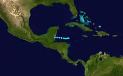 | Frieda | October 16 – 19 | Tropical storm | 60 (95) | 1005 | Cayman Islands, Belize | None | None | |||